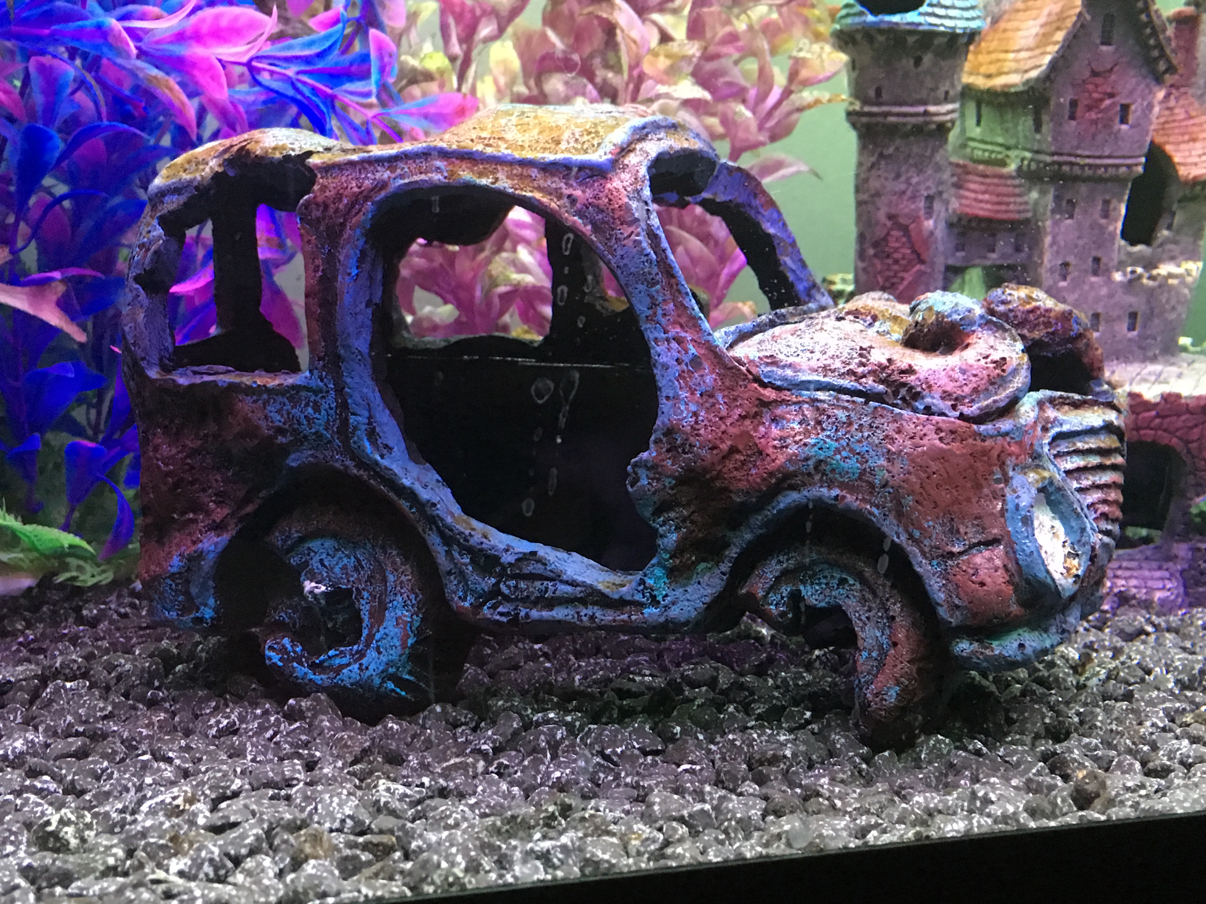 Sunken car in fish tank