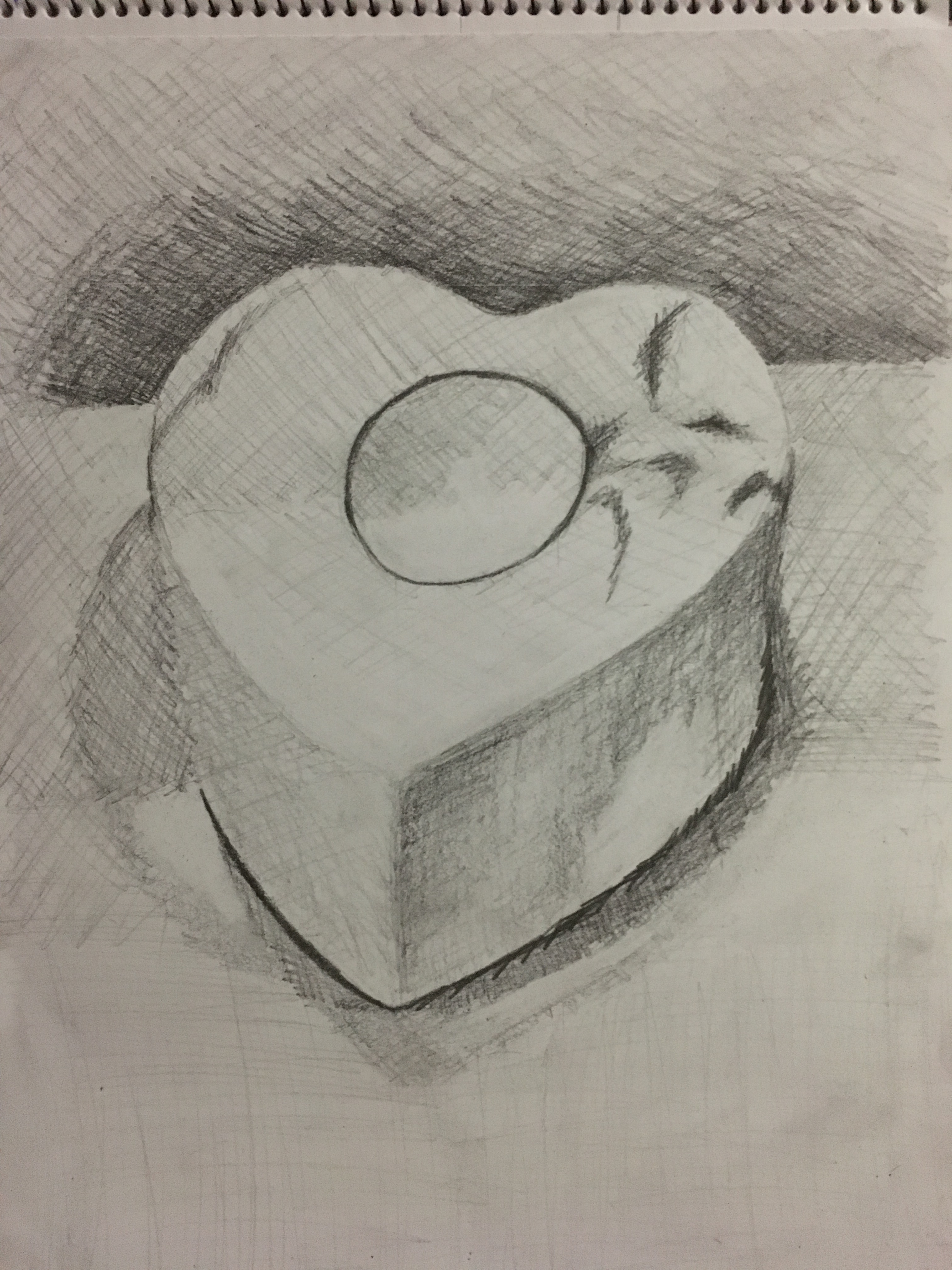 Whilst I was aware I was meant to be focusing on natural objects, I was drawn to the different areas of tone and differing areas of shadows overlapping each other due to several different lighting angles and also the marbling detail to the object.