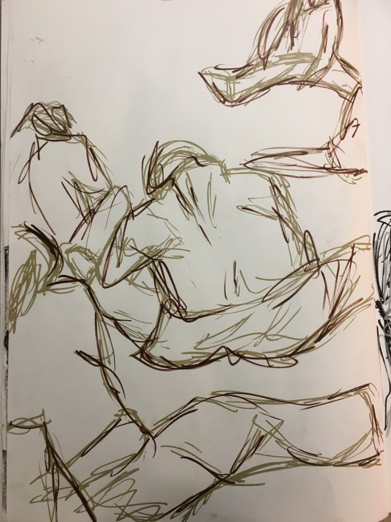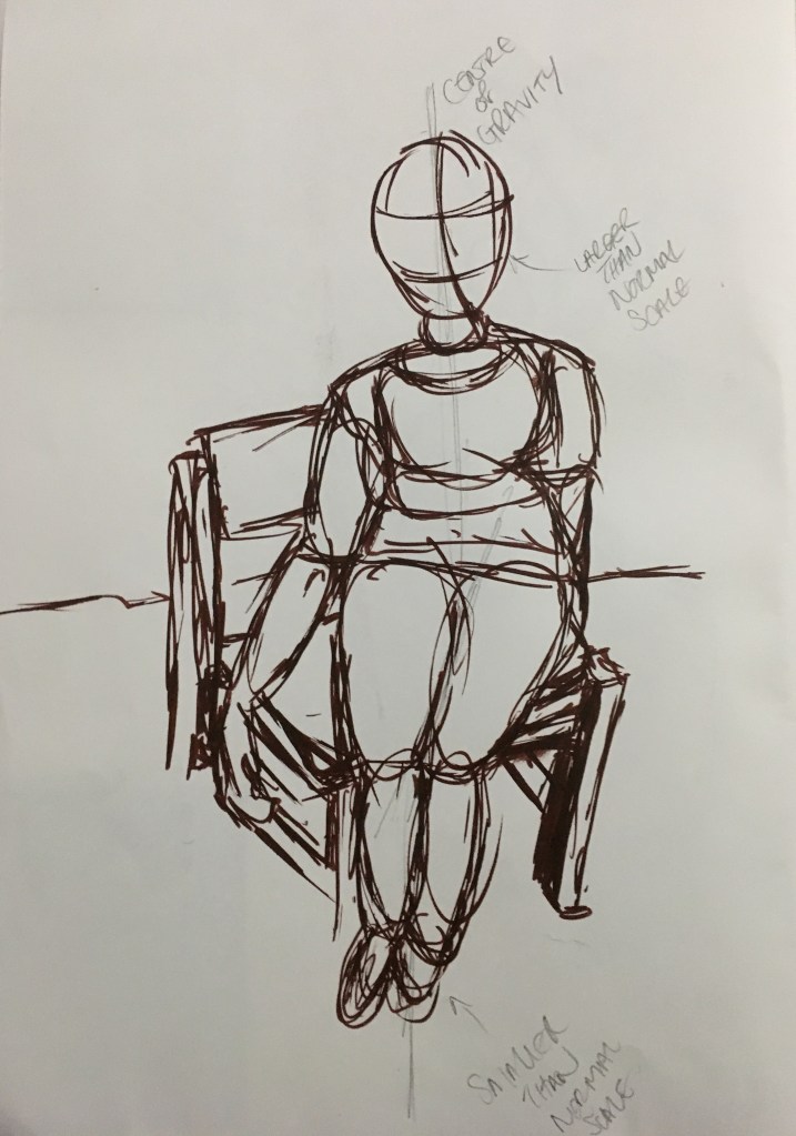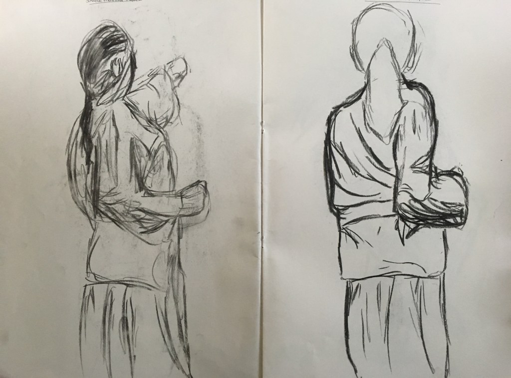 Looking again at these pieces, I can see how Moore has used the black markings to create the negative space of the backdrop in certain parts of the pieces to create the illusion of the foreground and positive space of the sheep’s heads or bodies. Where the pieces have shadows and are at their darkest, the line has been applied thicker and broader strokes. Where the areas are at their lightest, the lines are very light and almost non-existent in certain places. The lines used are sometimes straight, cross-hatched and wiggly. I think this is something I need to consider in my own work and to acknowledge that I do not need to apply line in every single part of the piece to create depth, as well as showing direction and movement.