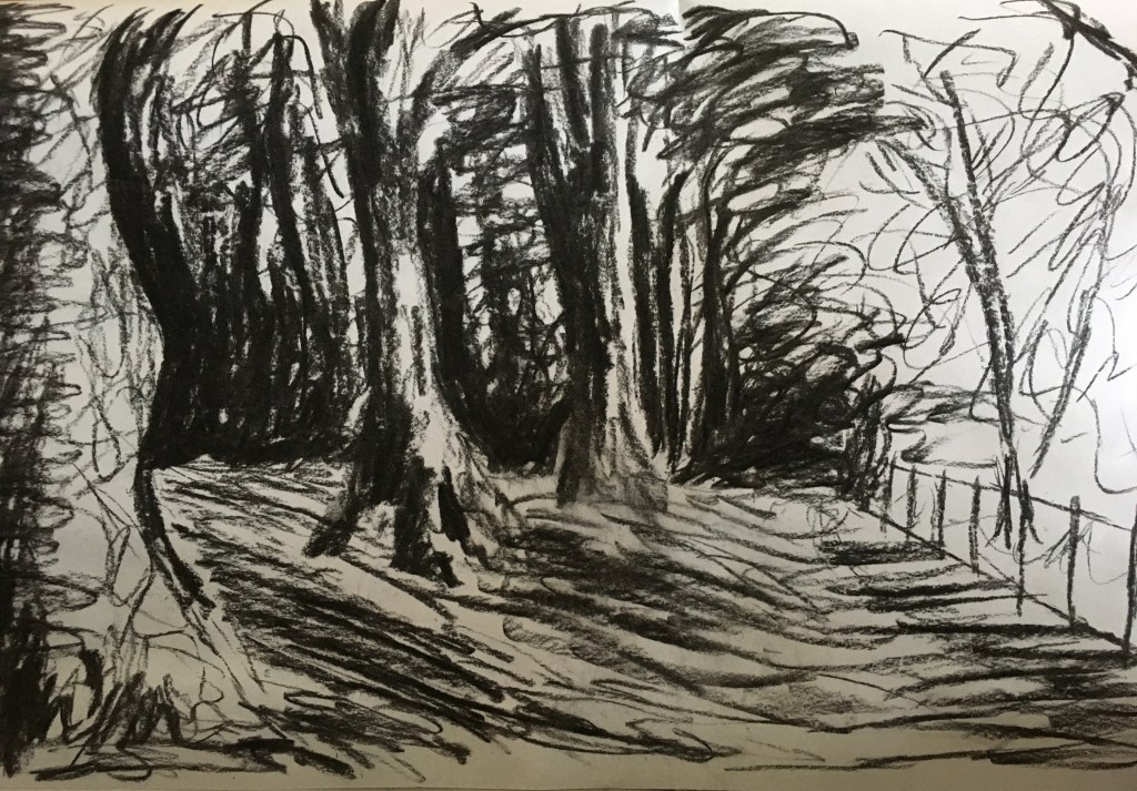 I was actually rather pleased with myself consider how fast I had worked to create these studies and feel I have been successful in creating depth rather well within the sketch of the single tree with trees in the background as the shadows and different strengths of tone really does work to create the impression of depth.