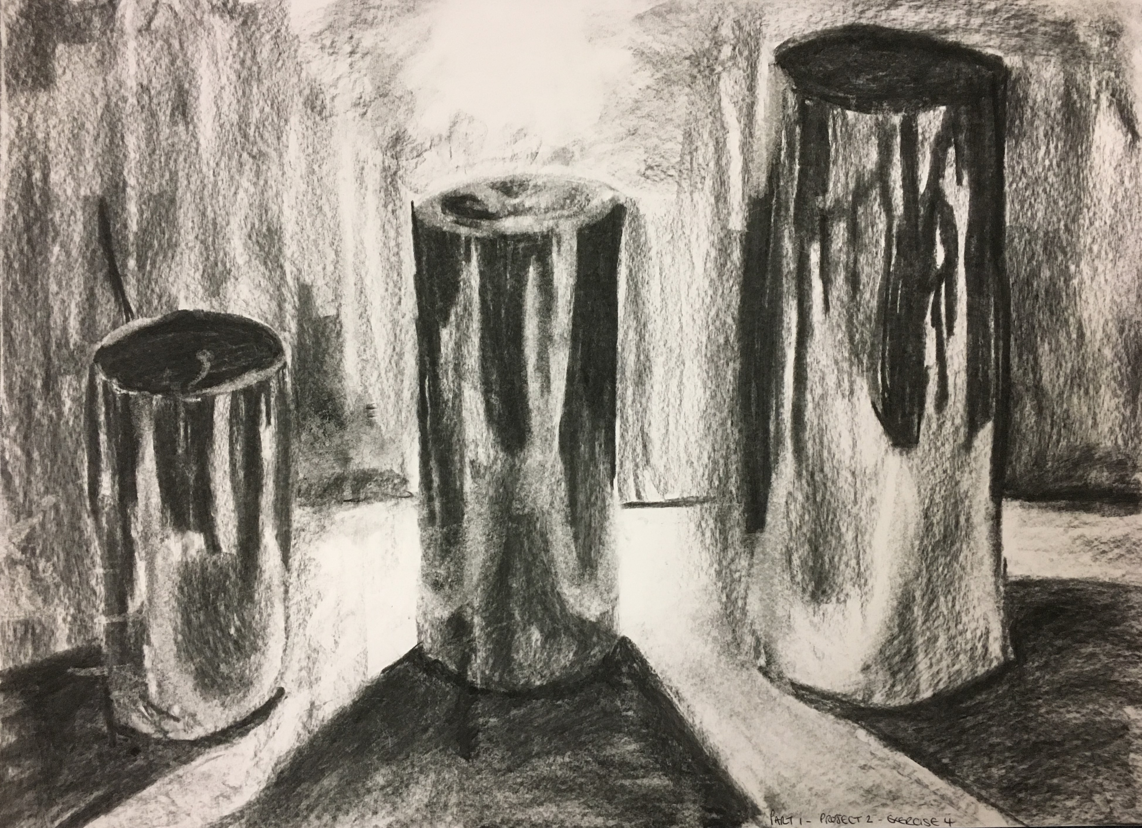 As a few quick exercises to familiarise myself with the group of objects before I got to work on my actual final piece, I decided to attempt some basic exercises I remembered from my school days: